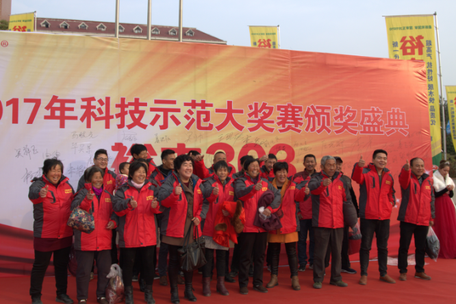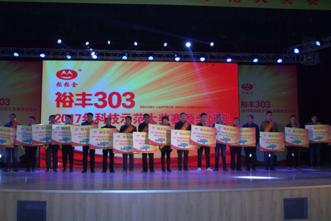 2017年11月16日,由北京聯(lián)創(chuàng)種業(yè)股份有限公司舉辦的2017年裕豐303科技示范大獎賽頒獎盛典在安徽蕭縣會議中心隆重舉行。安徽省蕭縣人民政府副縣長李建明、蕭縣農(nóng)委、農(nóng)技推廣中心、蕭縣人民廣播電臺、北京聯(lián)創(chuàng)種業(yè)公司總裁彭澤斌、副總裁史澤琪、粒粒金事業(yè)部總經(jīng)理王青才等有關(guān)領(lǐng)導(dǎo)以及來自河南新農(nóng)村頻道、山東農(nóng)科頻道、河北電視臺、農(nóng)民日報、河北農(nóng)民報、河南科技報、江蘇科技報、安徽種業(yè)、農(nóng)財寶典等有關(guān)媒體朋友參加了本次頒獎盛典;來自北京、天津、河南、山東、河北、安徽、江蘇七省市廣大農(nóng)技推廣商及周邊種植農(nóng)戶2000多人也參加了此次頒獎盛典。北京聯(lián)創(chuàng)種業(yè)總裁彭澤斌現(xiàn)場宣讀了《北京聯(lián)創(chuàng)種業(yè)關(guān)于對2017年裕豐303科技示范戶表彰的決定》,副總裁史澤琪作《北京聯(lián)創(chuàng)種業(yè)關(guān)于2017年裕豐303科技示范工作實(shí)施的報告》,內(nèi)容精彩繪呈,引起與會者陣陣熱烈掌聲。